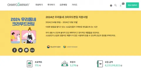 ○오마이컴퍼니 성진경 대표는 "우리동네 크라우드펀딩 지원사업을 통해 불경기에 어려움을 겪고 있는 소상공인들이 고민하고 있는 판로개척과 자금조달 문제를 한꺼번에 해결할 수 있도록 돕고 있다" 며 "앞으로도 로컬에서 성실히 일하고 있는 소상공인을 발굴하여 대중과의 접점을 통해 소상공인과 나라경제가 활성화하는데 역할을 하겠다”고 밝혔다.