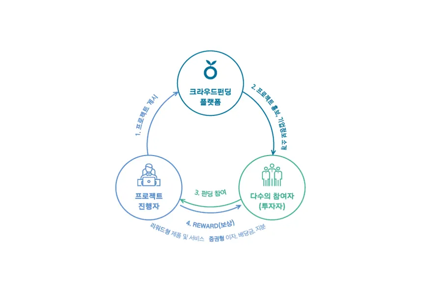 진정성 있는 프로젝트 스토리를 소개하고, 적극적인 홍보 활동을 통해 후원을 받아 감사의 의미를 담은 리워드(제품/서비스)를 제공하는 방식을 말합니다.