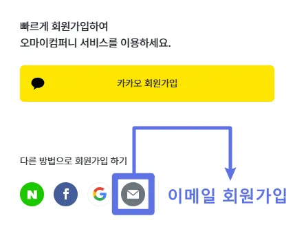 메인 화면 우측 상단 로그인 → 하단 회원가입 → SNS 혹은 이메일 회원가입